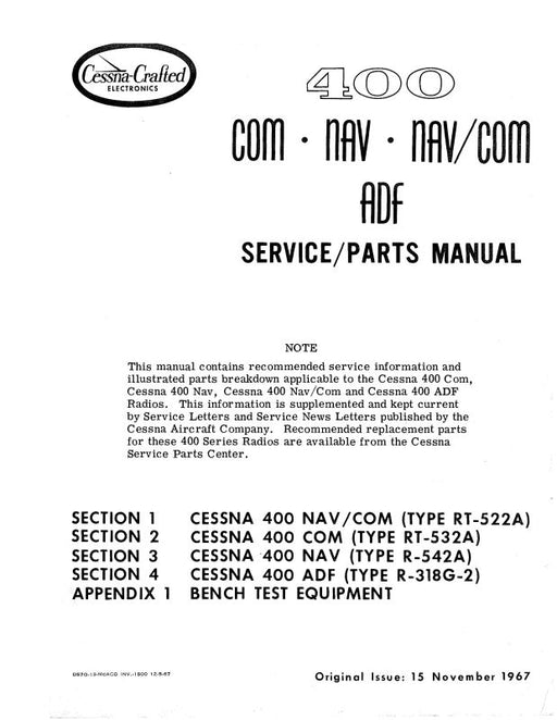 $60.00| /Cessna 400 COM,NAV, Nav-ComM ADF 1967 Maintenance & Parts Manual (D570-13)Cessna Avionics$60.00| /Sale