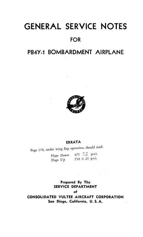 $101.00| /Consolidated PB4Y-2 Airplane General Service Notes (CSPB4Y2-45-GM-C)
