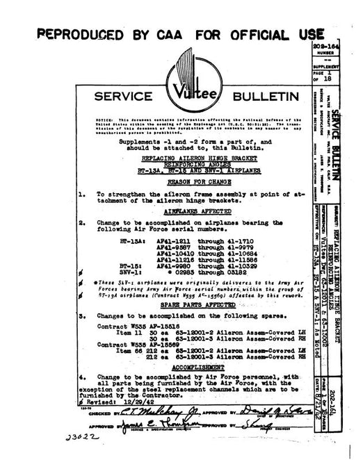 $56.00| /Consolidated BT-13A & BT-15 Bulletins Service Bulletins (CSBT13A,15-SLB)