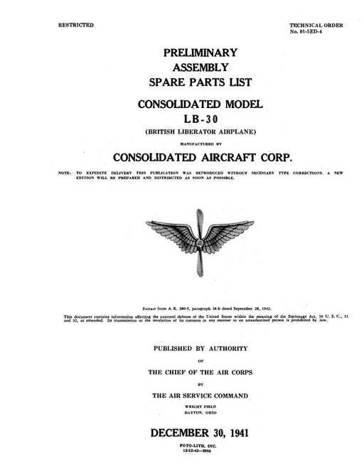 $52.00| /Consolidated LB-30 1941 Spare Parts List (01-5ED-4)