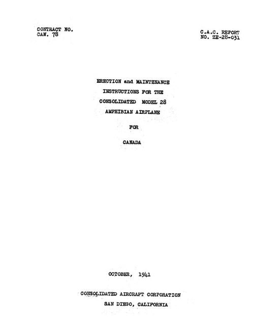 $101.00| /Consolidated Model 28 1941 Erection & Maintenance Instructions (ZE-28-031)