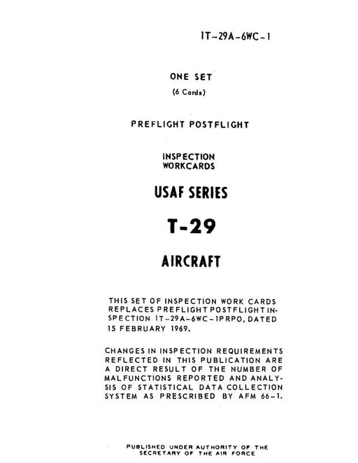 $14.00| /Consolidated T-29 Preflight Postflight Inspection Workcards (1T-29A-6WC-1)