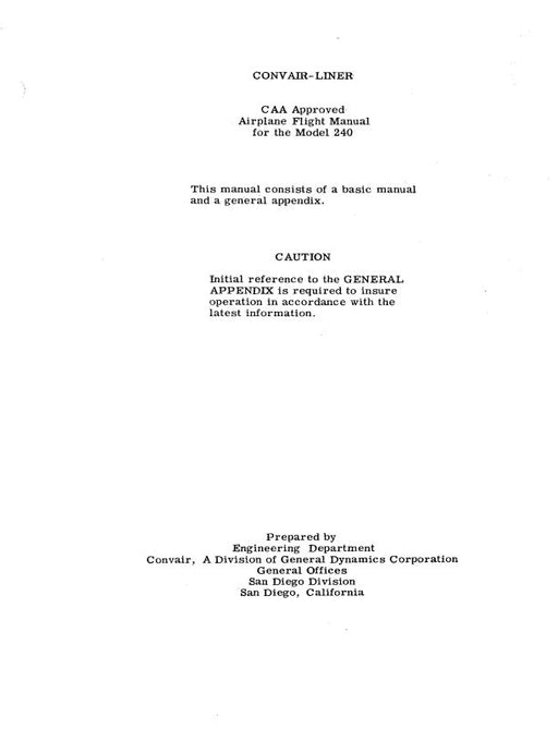 Convair AirlinersEASTERN AIRLINES CV-440 FLIGHT MANUAL FAA APPROVED MAY 1960 - REVISED 1968 CONTAINS: OPERATING LIMITATIONS,OPERATING PROCEDURES, EM...