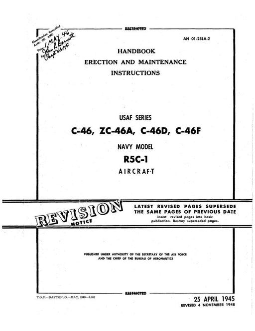 $293.00| /Curtiss-Wright C-46, ZC-46A, C-46D, C-46F Maintenance Instructions (TO-1C-46A-2)