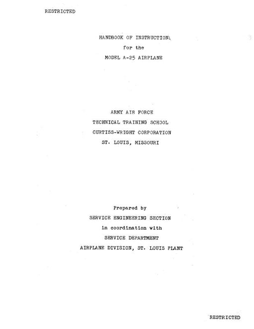 $204.00| /Curtiss-Wright AAF Model A-25 Airplane Handbook Of Operation & Maintenance (797)