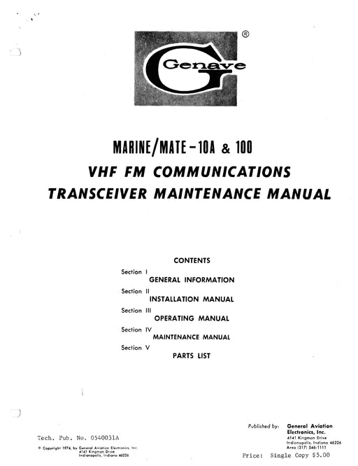 $23.00| /Geneve Marine/Mate-10A & 100 VHF FM Communications Transceiver Maintenance Manual