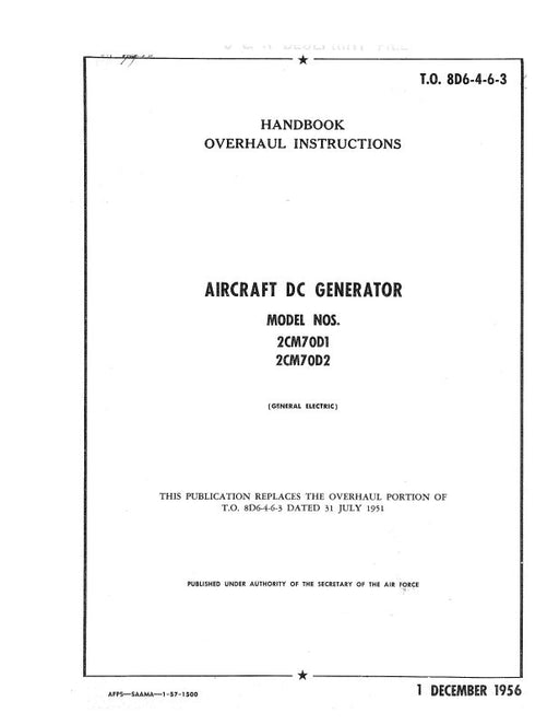 $23.00| /General Electric Company DC Starter-Generator 1956 Overhaul Instructions (8D6-4-6-3)