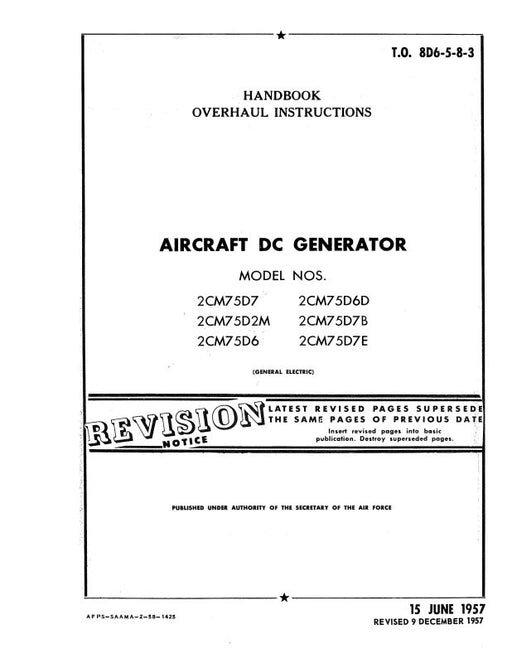 $29.00| /General Electric Company DC Starter-Generator 1957 Overhaul Instructions (8D6-5-8-3)