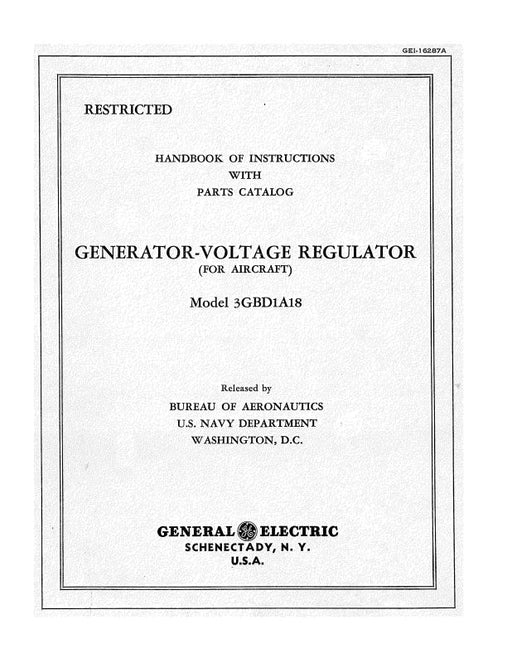 $23.00| /General Electric Company Generator-Voltage Regulator Instruction Manual With Parts Catalog (GEI-16287A)