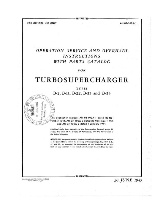 $37.00| /General Electric Company B-2, B-11, B-22, B-31, B-33 Operation Service & Overhaul Instructions W-Parts (03-10DA-1)