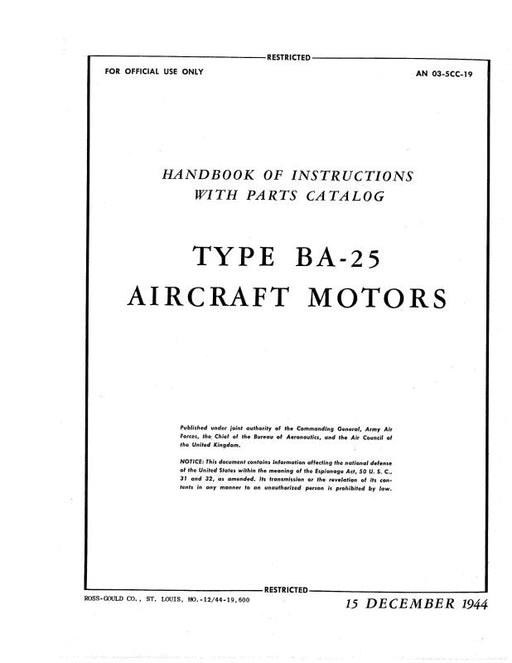 $40.00| /General Electric Company BA-25 Aircraft Motors Instructions With Parts Catalog (03--5CC-19)