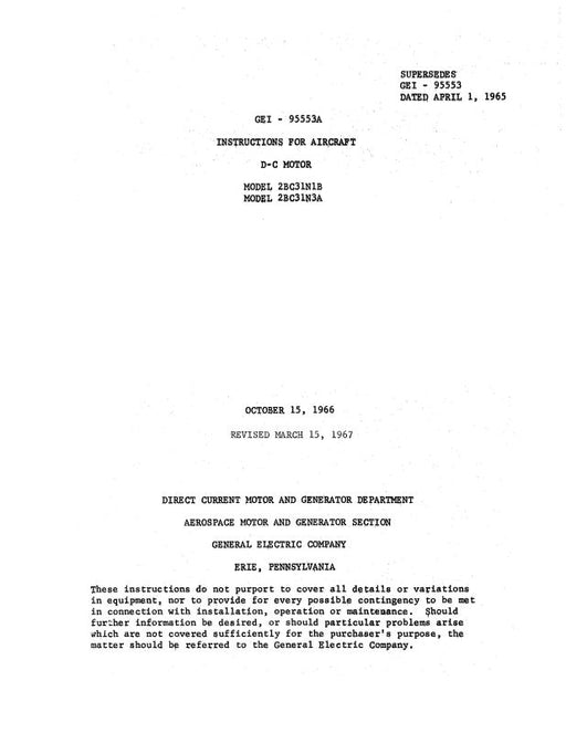 Sale $29.00| /General Electric Company DC Starter-Generator 2CM73J1A, 2CM73J2 Instructions 1966 (GEI-95543A)