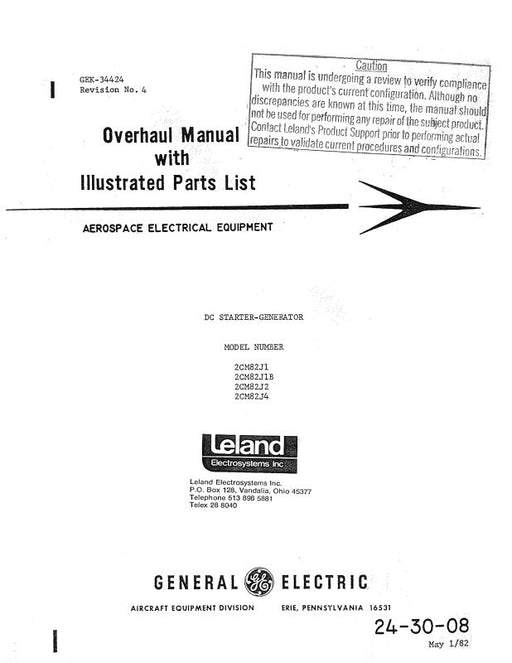 $40.00| /General Electric Company DC Starter-Generator 1982 Overhaul Manual with Illustrated Parts List (24-30-08)