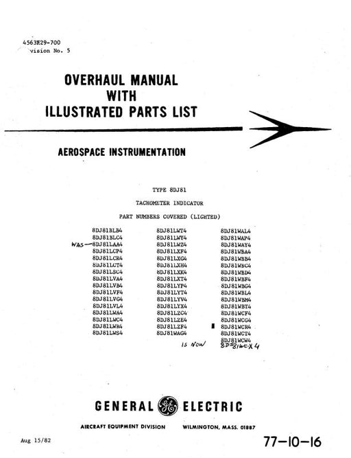 $35.00| /General Electric Company Tachometer Indicator Overhaul Instructions With Illustrated Parts 1982 (4563K29-700)