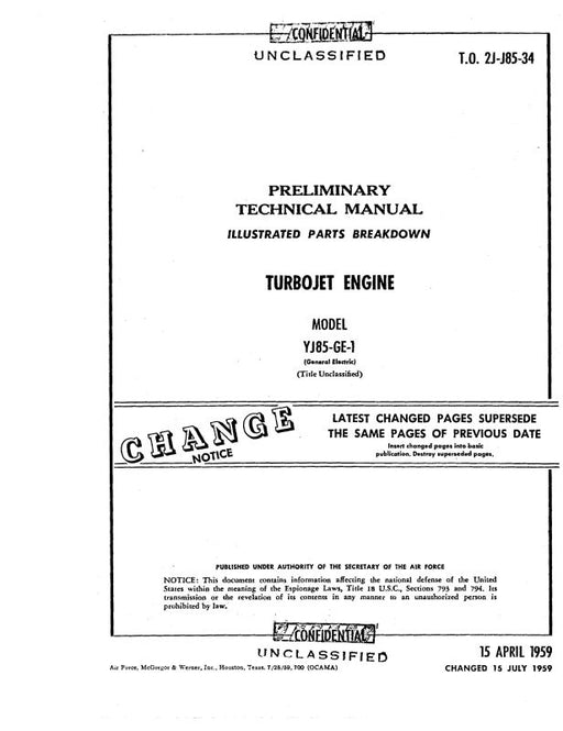 General Electric Company EnginesGeneral Electric CJ805-3 Turbojet Engine Operating Instructions - GEI67826 - Dated July 15, 1959 - Contains: Introduction, Engine Description, Engi...
