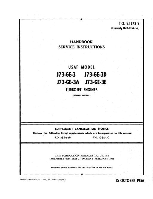 $105.00| /General Electric Company J73-GE-3, -3A, -3D, -3E 1956 Maintenance Instructions (2J-J73-2)
