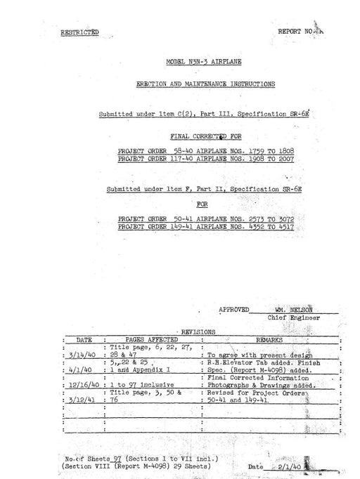 $12.00| /Naval Aircraft Factory N3N-3 1940 Aircraft Specification (M-4098)