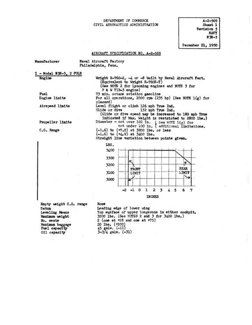 Sale $9.00| /Naval Aircraft Factory N3N-1 1951 Aircraft Specification (SPEC.-NO.-AR-2)