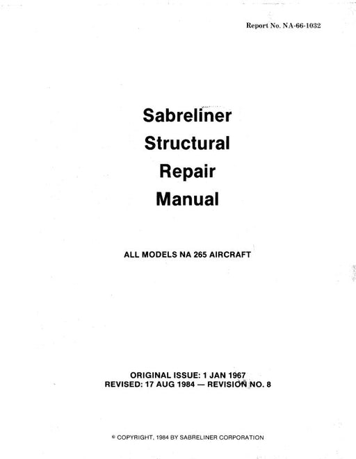 Sale $178.00| /North American NA-265 Sabreliner 1967 Structural Repair Manual