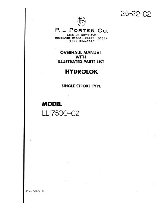 $29.00| /P.L. Porter Hydrolok Model LL17500-02 Overhaul With Illustrated Parts (25-22-02)