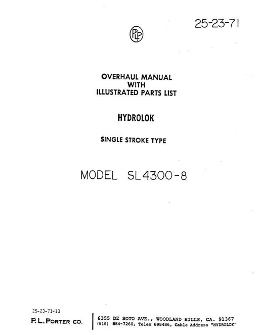 $29.00| /P.L. Porter Hydrolok Model SL4300-8 Overhaul With Illustrated Parts (25-23-71)