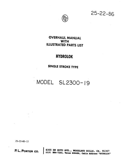 $29.00| /P.L. Porter Hydrolok Model SL2300-19 Overhaul With Illustrated Parts (25-22-86)