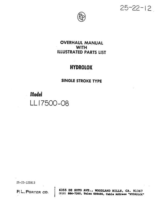 $29.00| /P.L. Porter Hydrolok Model LL17500-08 Overhaul With Illustrated Parts (25-22-12)