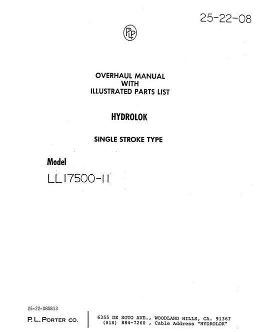 $29.00| /P.L. Porter Hydrolok Model LL17500-11 Overhaul With Illustrated Parts (25-22-08)