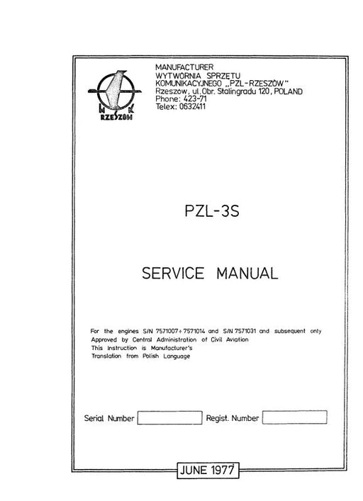 $58.00| /Polish Engine PZL-3S 1977 Aircraft Engines Maintenance Manual (PPPZL3S-77-M-C)