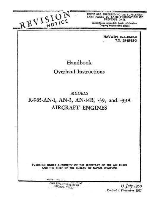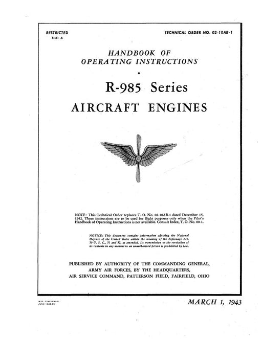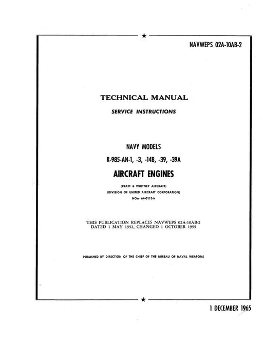 Sale $18.00| /Pratt & Whitney Aircraft R985-AN-1 thru AN-14B 1945 Maintenance Manual (AN-02-10AB-2)Pratt & Whitney Aircraft EnginesR-985-AN-1,2,3,4,6,6B,8,10,12,12B,14B $18.00| /Sale
