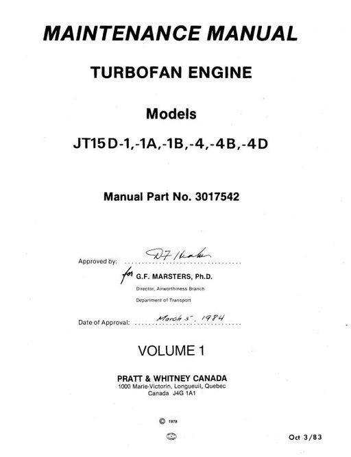 $155.00| /Pratt & Whitney Aircraft JT15D-1,-1A & -4 Maintenance Manual (3017542)Pratt & Whitney Aircraft EnginesTurbofan Engine $155.00| /Sale