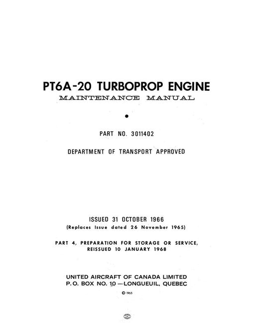 $104.00| /Pratt & Whitney Aircraft PT6A-20 Turboprop Engine Maintenance Manual (3011402)Pratt & Whitney Aircraft EnginesRevised October 1966 $104.00| /Sale