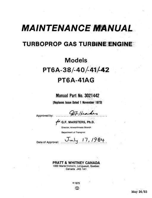 $201.00| /Pratt & Whitney Aircraft PT6A-38--40--41--42--41AG Maintenance Manual (3021442)Pratt & Whitney Aircraft EnginesTuboprop Gas Turbine Engine Revised May 1983 $201.00| /Sale