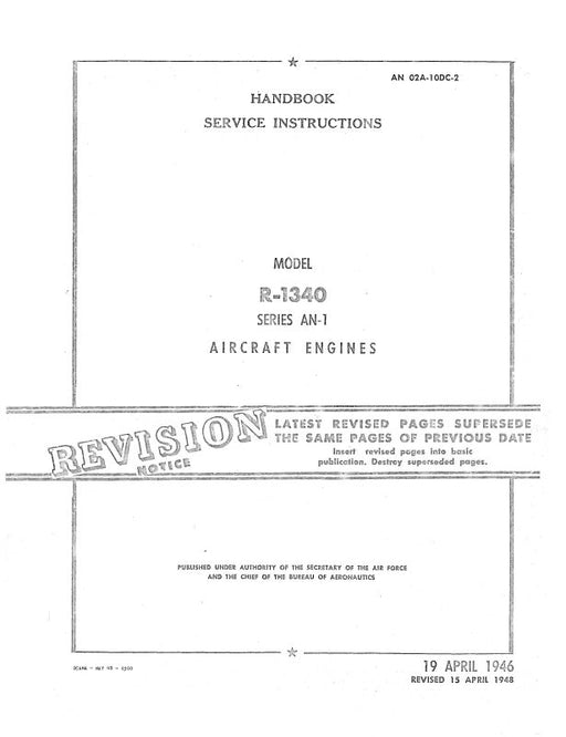 $46.00| /Pratt & Whitney Aircraft R-1340-AN-1 Series Service Instructions (02A-10DC-2)Pratt & Whitney Aircraft Engines$46.00| /Sale