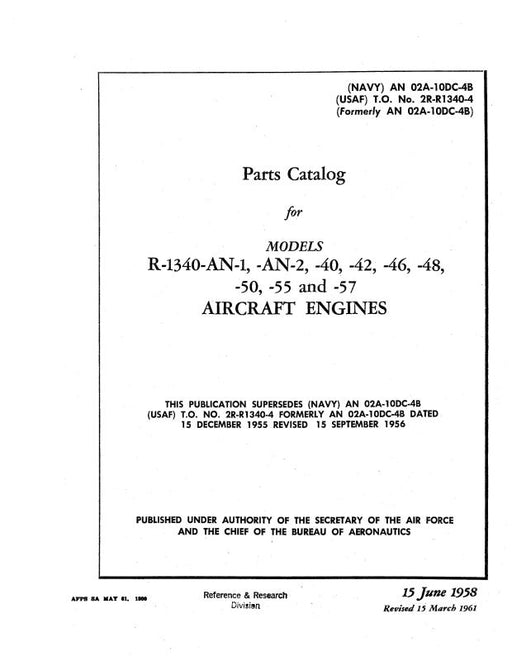 $23.00| /Pratt & Whitney Aircraft R-1340 Series Parts Catalog (02A-10DC-4B)Pratt & Whitney Aircraft EnginesR-1340-AN-1, -40, -55, & -57 $23.00| /Sale