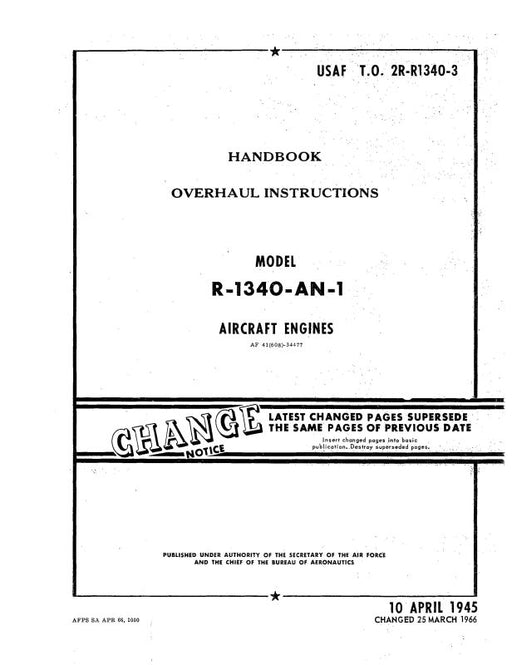 $104.00| /Pratt & Whitney Aircraft R-1340-AN-1 Overhaul Instructions (2R-R1340-3)Pratt & Whitney Aircraft Engines$104.00| /Sale