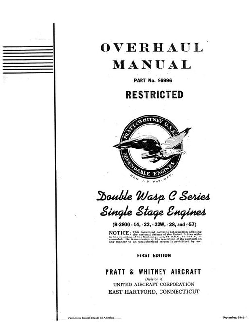 $74.00| /Pratt & Whitney Aircraft Double Wasp R-2800-Series Overhaul Manual (96996)