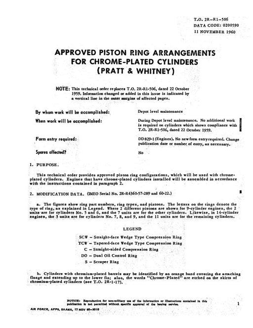 $8.00| /Pratt & Whitney Aircraft Approved Piston Ring Arrangements Piston Ring Arrangements (2R-R1-506)