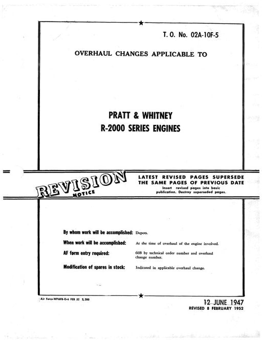 $25.00| /Pratt & Whitney Aircraft R-2000 Series Overhaul Changes (02A-10F-5)