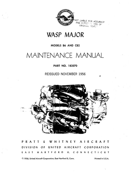 $36.00| /Pratt & Whitney Aircraft Wasp Major B6 & CB2 Models Maintenance Manual (182070)