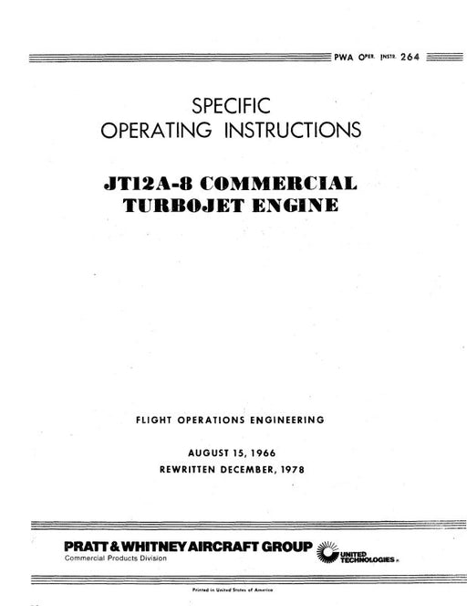 $173.00| /Pratt & Whitney Aircraft JT12A-8 Operating Instructions (PWA-IO-264)