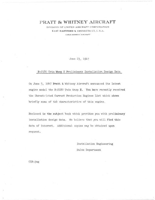 $12.00| /Pratt & Whitney Aircraft R-2180 Series 1947 Design Data (PWR2180DATA-47C)