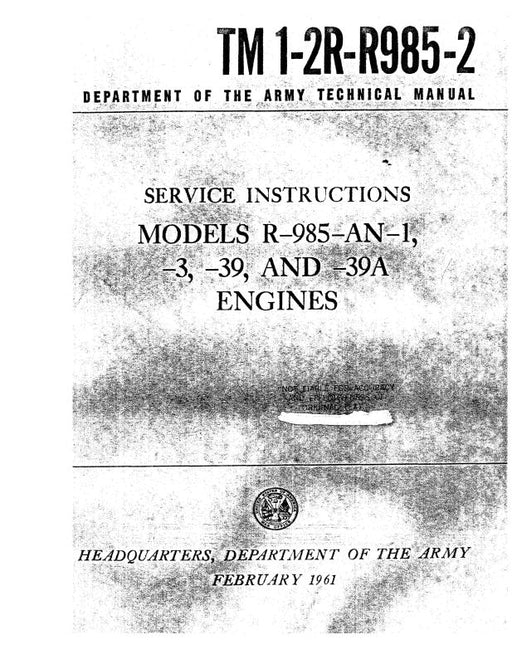 $53.00| /Pratt & Whitney Aircraft R-1340, 985 Series Overhaul Instructions (2R-R1340-23)