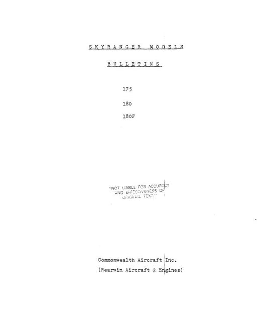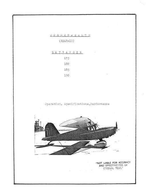 $14.00| /Rearwin Skyranger 175,180,185,190 Operation & Aircraft Specifications Data with Performance (RW175-OP-C)