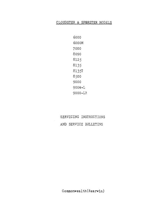 $15.00| /Rearwin Cloudster & Sporster 6000-9000 Servicing Instructions and Service Bulletins (RW6000-M-C)