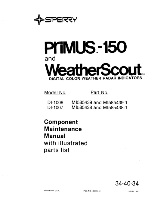 from $46.00| /Sperry Primus-150 Model No. DI-1007, DI-1008 Part No. MI585438, MI585439 MI585438-1, MI585439-1 Component Maintenance Manual with Illustrated Parts List