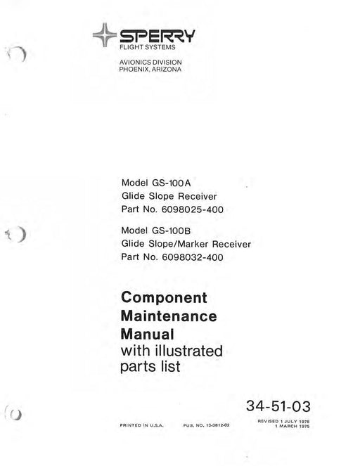 SperryModel GS-100A Glide Slope Receiver Part No. 6099025-400 Model GS-100B Glide Slope Receiver/Marker Receiver Part No. 6098032-400 Component Maintena...