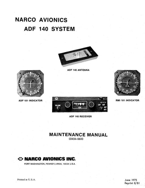 $63.00| /Narco ADF 140 System 1975 Maintenance Manual (03404-0600)