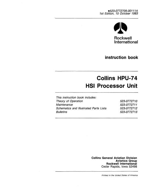 $44.00| /Collins HPU-74 & HSI Processor Unit Instruction Book (523-0772709-001)