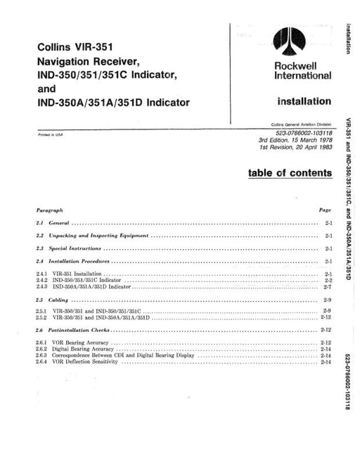 Sale $45.00| /Collins IND-30-31-31C Indicator 1980 Instruction Book (523-0769615-002)